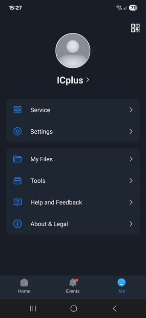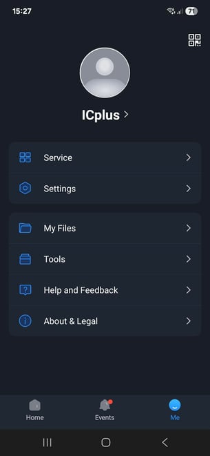 1. Tap the Me tab at the bottom right of the app, and select Service