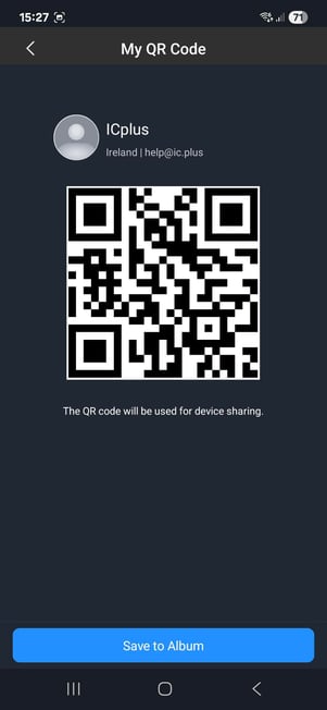 2. Their personal QR ID will be displayed. They can let you scan it directly, or select Save To Album to save the image and send it to you.